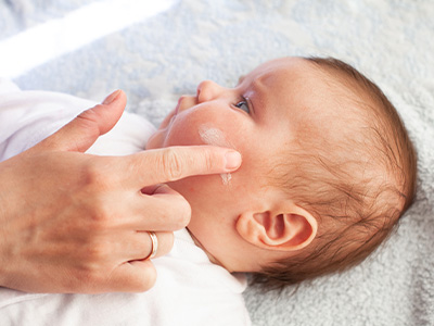 手指以外に顔や体にも、赤ちゃんにも使える、肌へのやさしさを考慮した設計です。 -